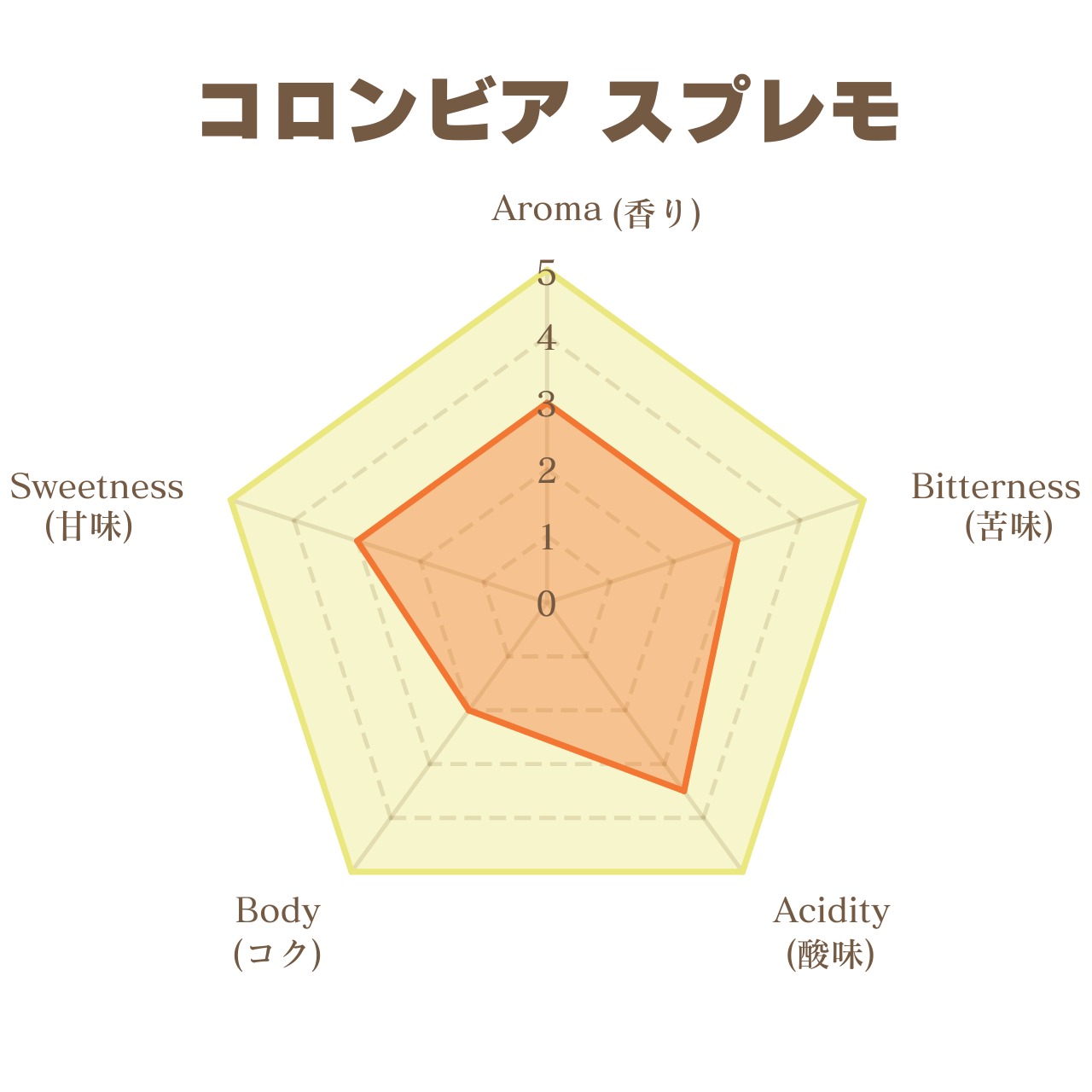 香ばしさ際立つ【ブコロンビア スプレモ】中深煎り~深煎りコーヒー。