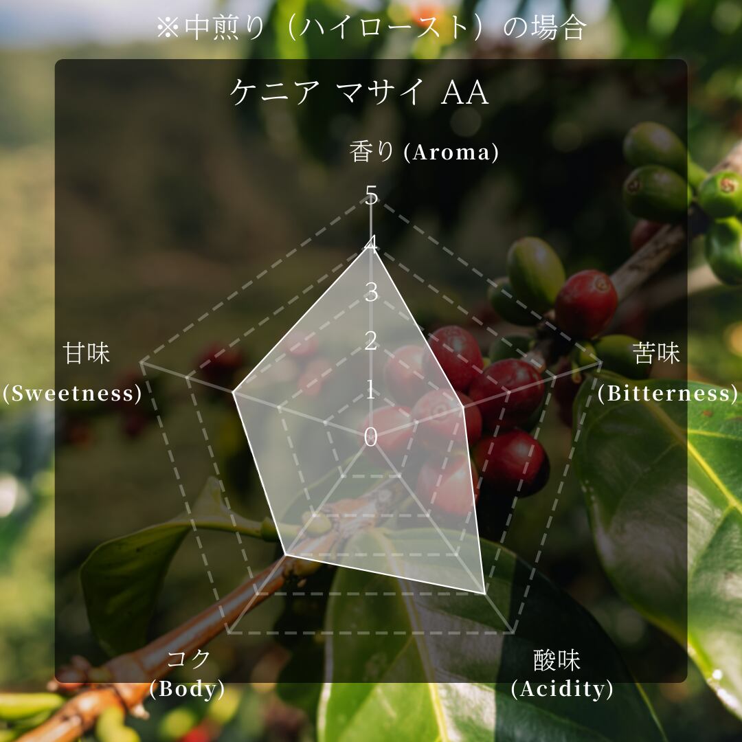 ケニアらしい力強い風味と、上質な甘さがしっかり感じられるコーヒー豆です。